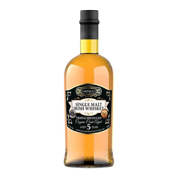 St. Patrick“s Single Malt Irish Whiskey Cognac Cask Aged 5 Years 45% 0,7L